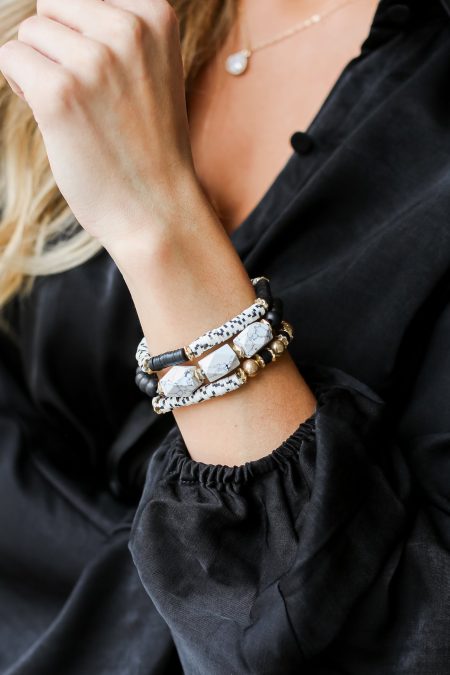 $134.00There’s no catching the Morgan Beaded Bracelet Set off-guard—it’ll always see you coming! This set of four bracelets is made of colored beads + gold beads. Wear them all together, or separately, either way you’ll love them! Available in 2 colors. Set Colored Bead Gold BeadsOne Size | Diameter 2.5”